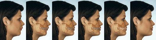 Abaixo está uma sequência sugerida para um recuo simples de mandíbula e uma cirurgia combinada, reparem que nos dois casos, mesmo com técnicas diferentes, nossa "modelo" apresenta um bom padrão facial final e uma ótima oclusão
